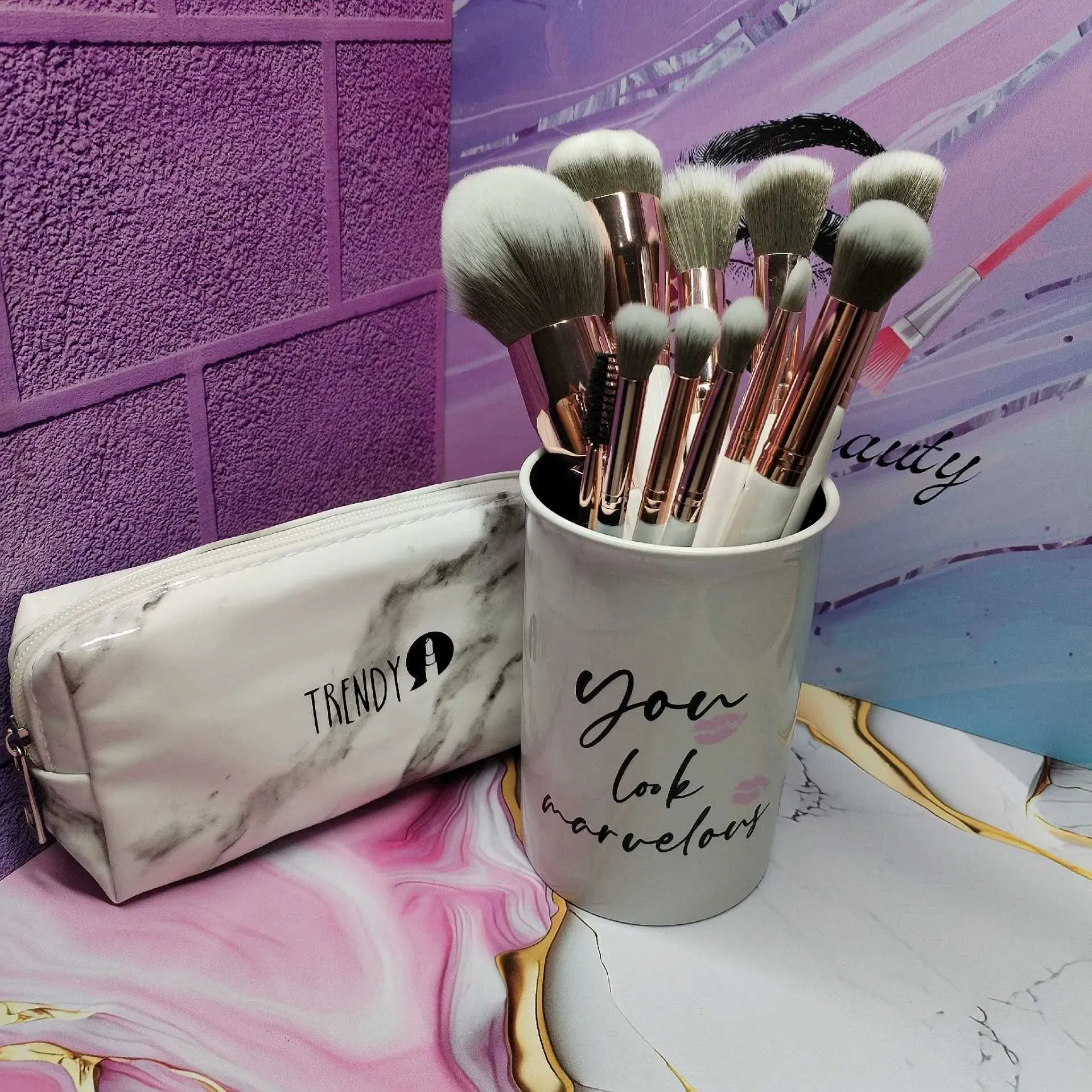 Kit Brochas Mármol Blanco